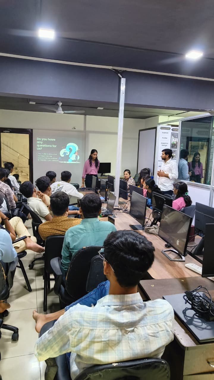 This seminar was concentrated on showing practical work which is made by students of Flutter development and Graphic Design, allowing everyone to learn from real industry works. Speakers show how creative tools like Canva can be used for craetive design and branding. The session also involve interview preparation tips, highlight communication, presentation skills and portfolio making. Students understand clarity on industry standards, creative workflows and how to present their work in interviews.